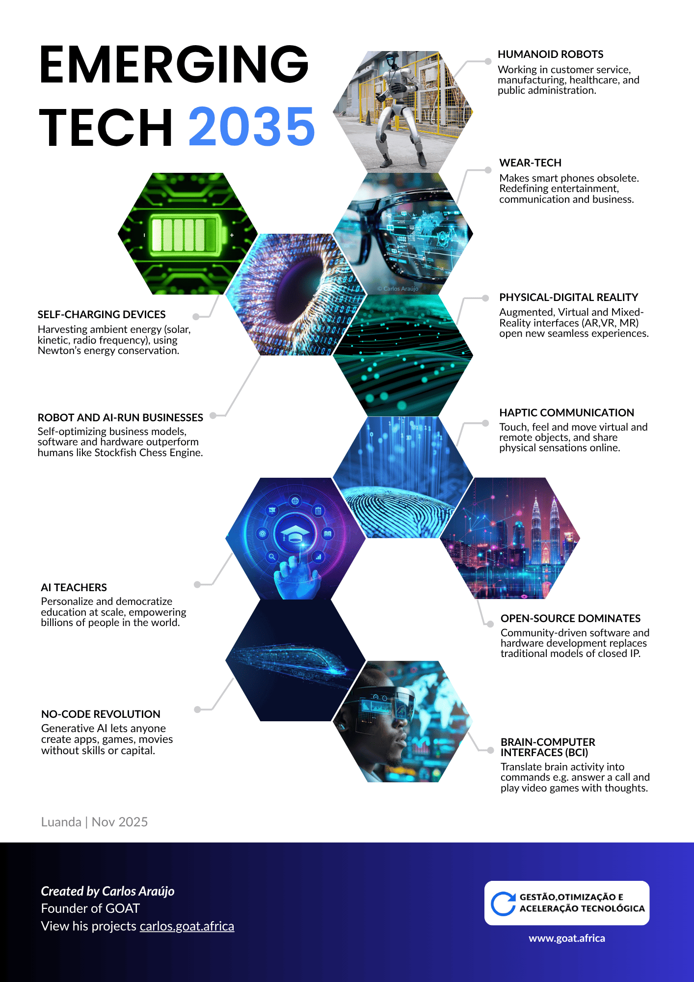 Poucos em África discutem o futuro tecnológico com clareza. Criou um infográfico com a sua visão das tecnologias que serão comuns daqui a 10 anos, e partilhou com todos.